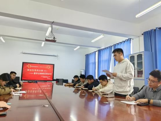 随后,支部在校学业榜样代表接续助力学风建设。安全221班吴欣然分享高效学习技巧,同班党支部副书记康博佳结合支部工作提出共同进步思路;工223班安陆毅(学院学生会主席)、工221班甄行则分别围绕“工作与学习平衡”“考公与课内学习协同”答疑解惑。最后,康旭老师对本次交流活动进行总结,肯定了毕业生党员“传帮带”及学业榜样分享的价值,鼓励低年级成员将所学经验转化为实际行动,在党建引领下扎实学风、共同成长。