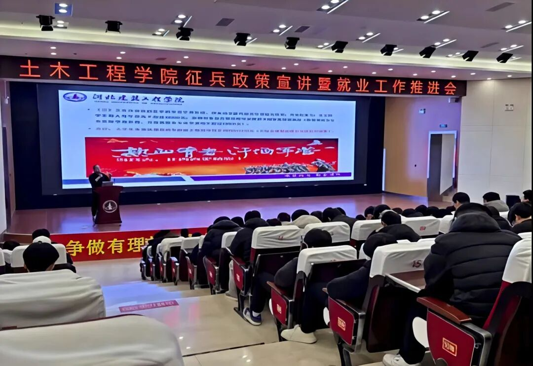 为积极响应国家征兵号召,激励青年学子投身国防建设事业,助力强军目标达成,土木工程学院于12月11日下午在新能源报告厅召开了此次征兵政策宣讲暨就业工作推进会议,学院领导班子及全体辅导员教师参加了本次会议。
