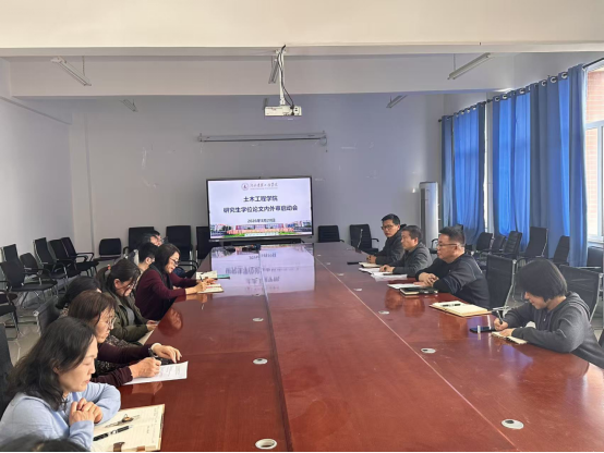 为严把研究生培养出口关,切实提升学位论文质量与人才培养成效,2026年3月20日,土木工程学院在土木楼309会议室召开2026届研究生学位论文内外审工作启动会,全面部署本年度论文评阅与质量把关相关工作。学院院长董捷、副院长刘晶磊、郝勇及全体研究生导师参加会议。